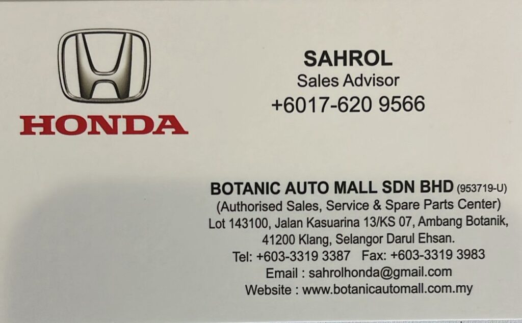 Sahrol Honda – Penasihat Jualan Honda Pilihan Ramai. Sahrol ialah penasihat jualan Honda yang sah dan berdaftar. Perkhidmatan saya merangkumi seluruh kawasan Klang dan seluruh Malaysia. Saya menawarkan pelbagai model serta promosi terkini daripada Honda. Dengan lebih 15 tahun pengalaman sebagai penasihat jualan Honda, saya telah membantu ramai pelanggan memiliki kereta impian mereka. Saya juga menyediakan khidmat nasihat dan panduan percuma untuk semua pelanggan.